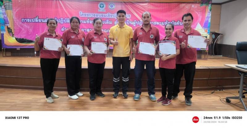 วันที่ 20 สิงหาคม 2567 กองสาธารณสุขและสิ่งแวดล้อม เทศบาลตำบลโพนทราย ได้ส่งเจ้าหน้าที่ประจำหน่วยกู้ชีพเทศบาลตำบลโพนทราย เข้าร่วมโครงการอบรมเชิงปฏิบัติการเปลี่ยนผ่านผู้ปฏิบัติการตามข้อบังคับเดิม สู่การเป็นผู้ปฏิบัติการตามข้อบังคับใหม่ ตำแหน่งอาสาสมัครฉุกเฉินการแพทย์ (อฉพ.) ประจำปี 2567 ณ ห้องประชุมจรัส สุวรรณเวลา ชั้น 10 อาคารศูนย์มะเร็งเฉลิมพระเกียรติจุฬาภรณ์ โรงพยาบาลร้อยเอ็ด วัตถุประสงค์เพื่อสนับสนุนการปฏิบัติงานด้านการแพทย์ฉุกเฉิน จังหวัดร้อยเอ็ดให้เป็นไปอย่างมีประสิทธิภาพและพัฒนาบุคลากรในระบบการแพทย์ฉุกเฉินให้มีมาตรฐานในระดับสากล โดยมี โรงพยาบาลร้อยเอ็ด เป็นองค์กรฝึกอบรม