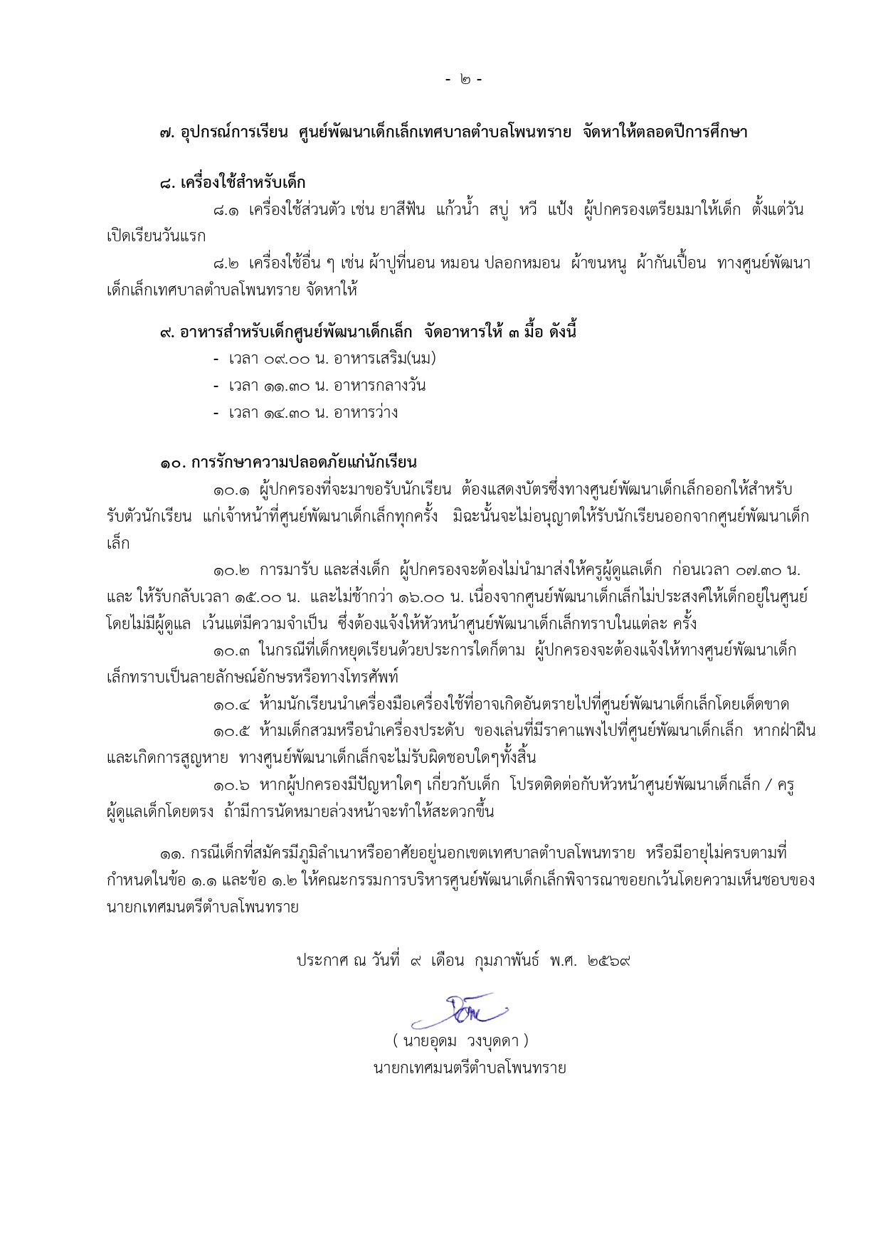 การรับสมัครนักเรียนเพื่อเข้าเรียนในศูนย์พัฒนาเด็กเล็กเทศบาลตำบลโพนทราย ประจำปีการศึกษา 2569