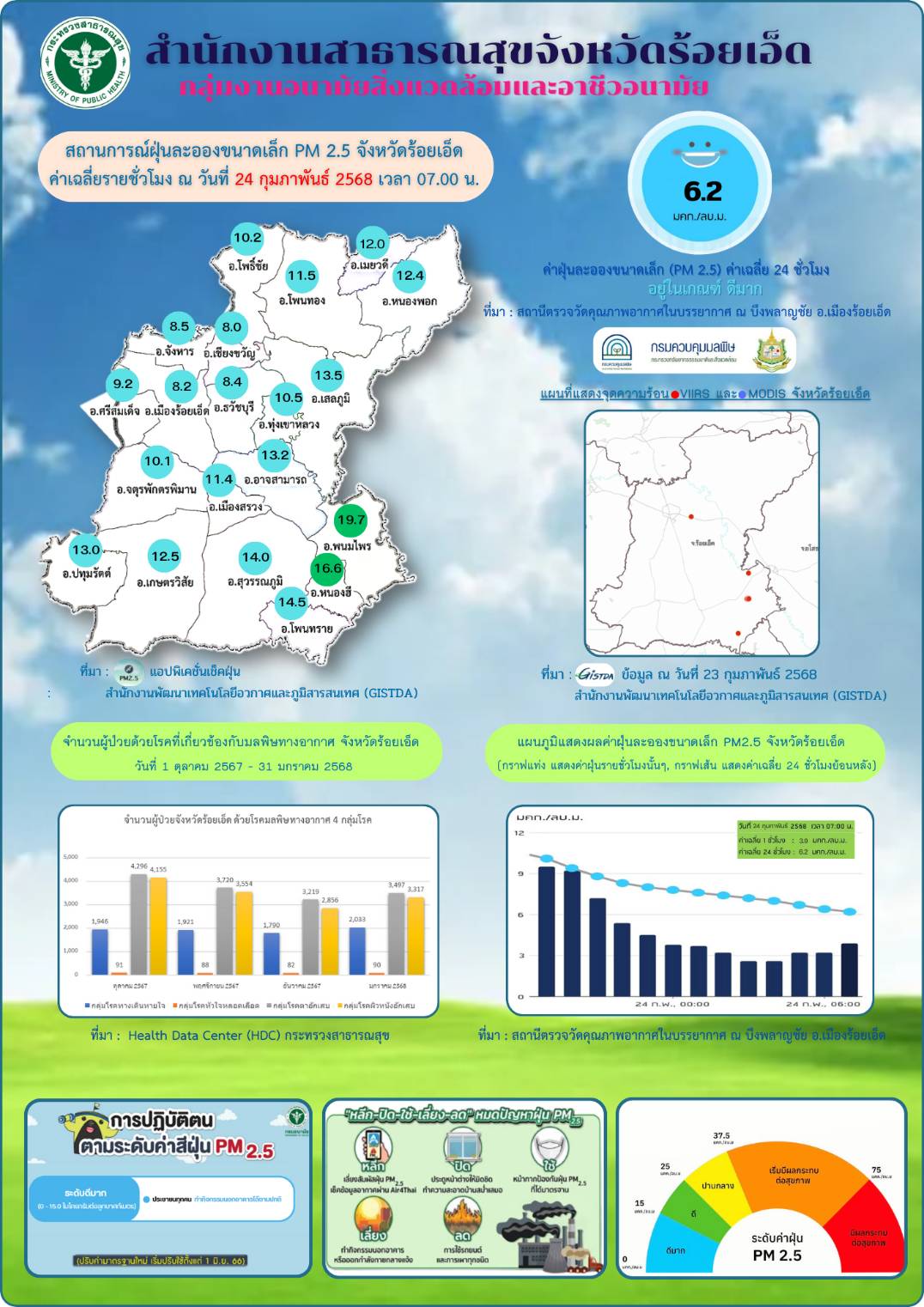 รายงานสถานการณ์ฝุ่นละอองขนาดเล็ก (PM2.5) จังหวัดร้อยเอ็ด เดือนกุมภาพันธ์ 2568