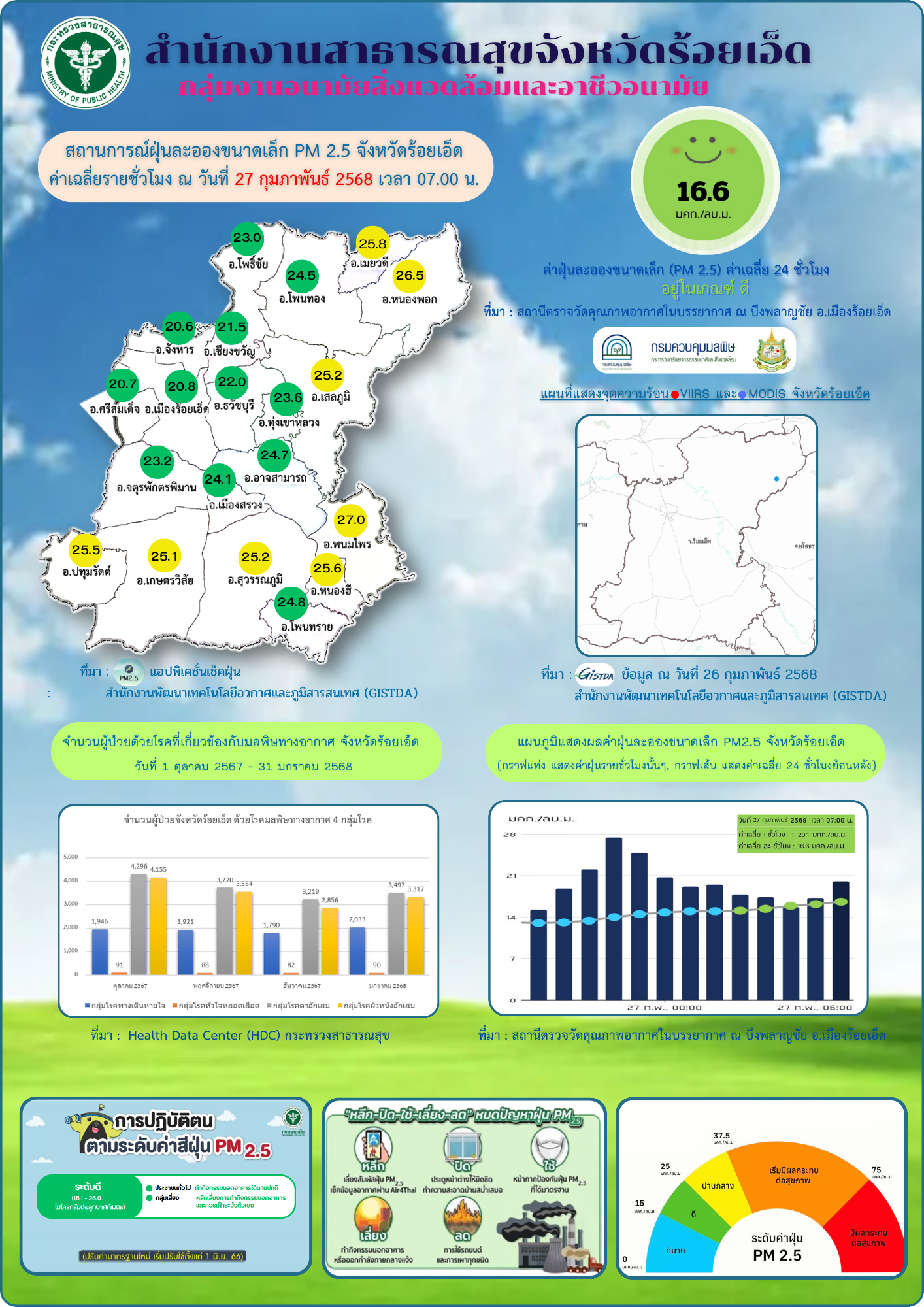 รายงานสถานการณ์ฝุ่นละอองขนาดเล็ก (PM2.5) จังหวัดร้อยเอ็ด เดือนกุมภาพันธ์ 2568