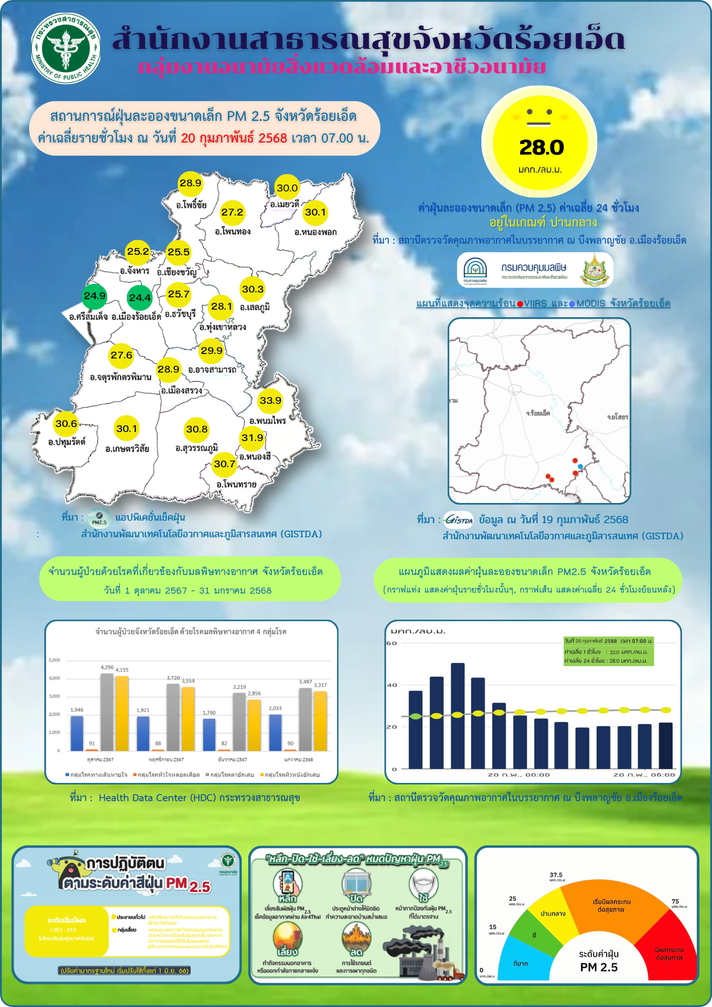 ชื่อเรื่อง : รายงานสถานการณ์ฝุ่นละอองขนาดเล็ก (PM2.5) จังหวัดร้อยเอ็ด เดือนกุมภาพันธ์ 2568