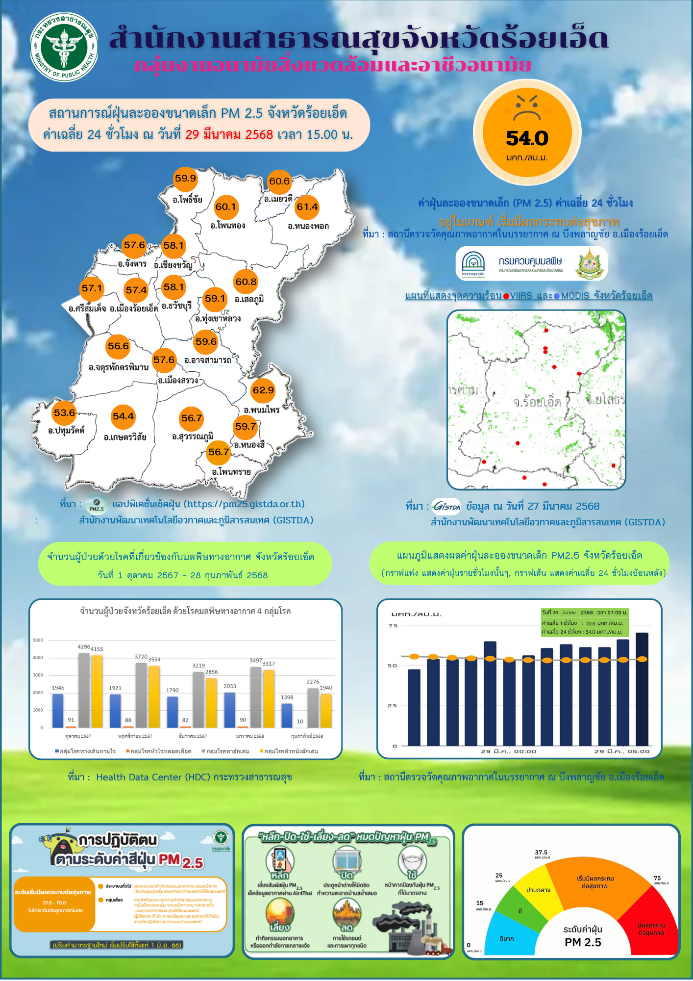 รายงานสถานการณ์ฝุ่นละอองขนาดเล็ก (PM2.5) จังหวัดร้อยเอ็ด เดือนมีนาคม 2568