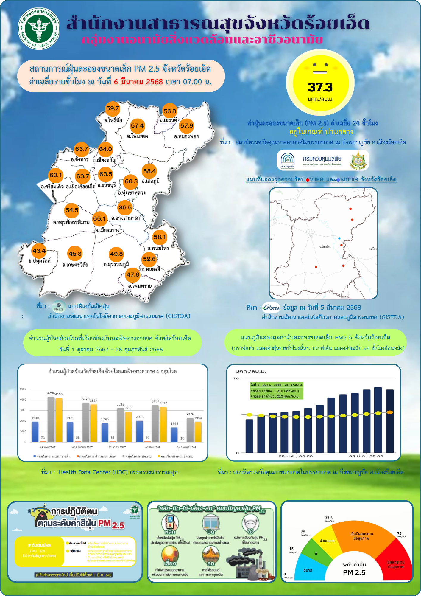 รายงานสถานการณ์ฝุ่นละอองขนาดเล็ก (PM2.5) จังหวัดร้อยเอ็ด เดือนมีนาคม 2568
