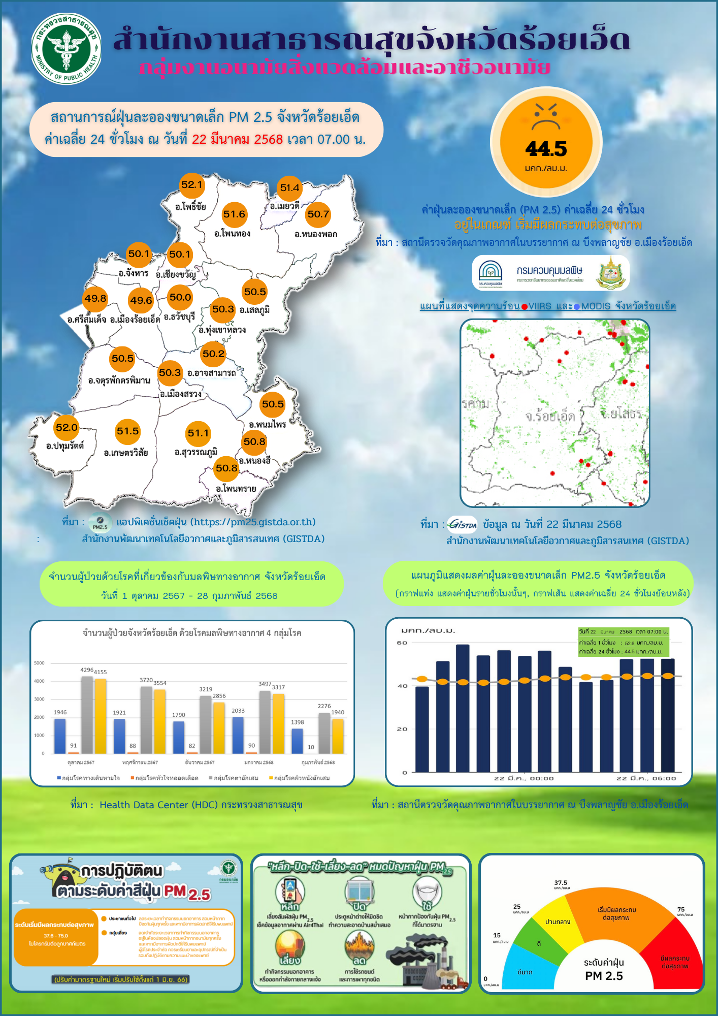 ชื่อเรื่อง : รายงานสถานการณ์ฝุ่นละอองขนาดเล็ก (PM2.5) จังหวัดร้อยเอ็ด เดือนมีนาคม 2568