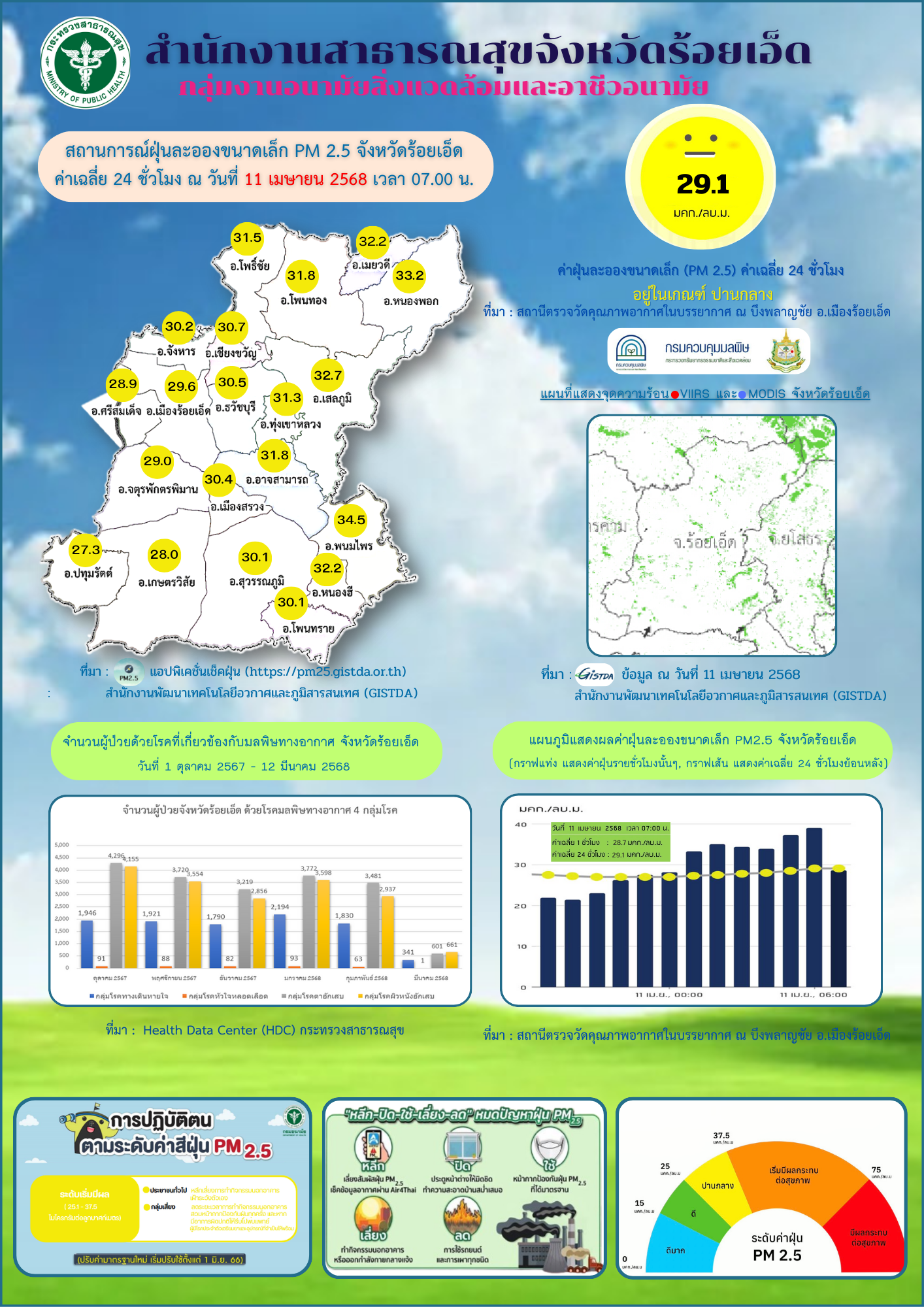 ชื่อเรื่อง : รายงานสถานการณ์ฝุ่นละอองขนาดเล็ก (PM2.5) จังหวัดร้อยเอ็ด เดือนเมษายน 2568