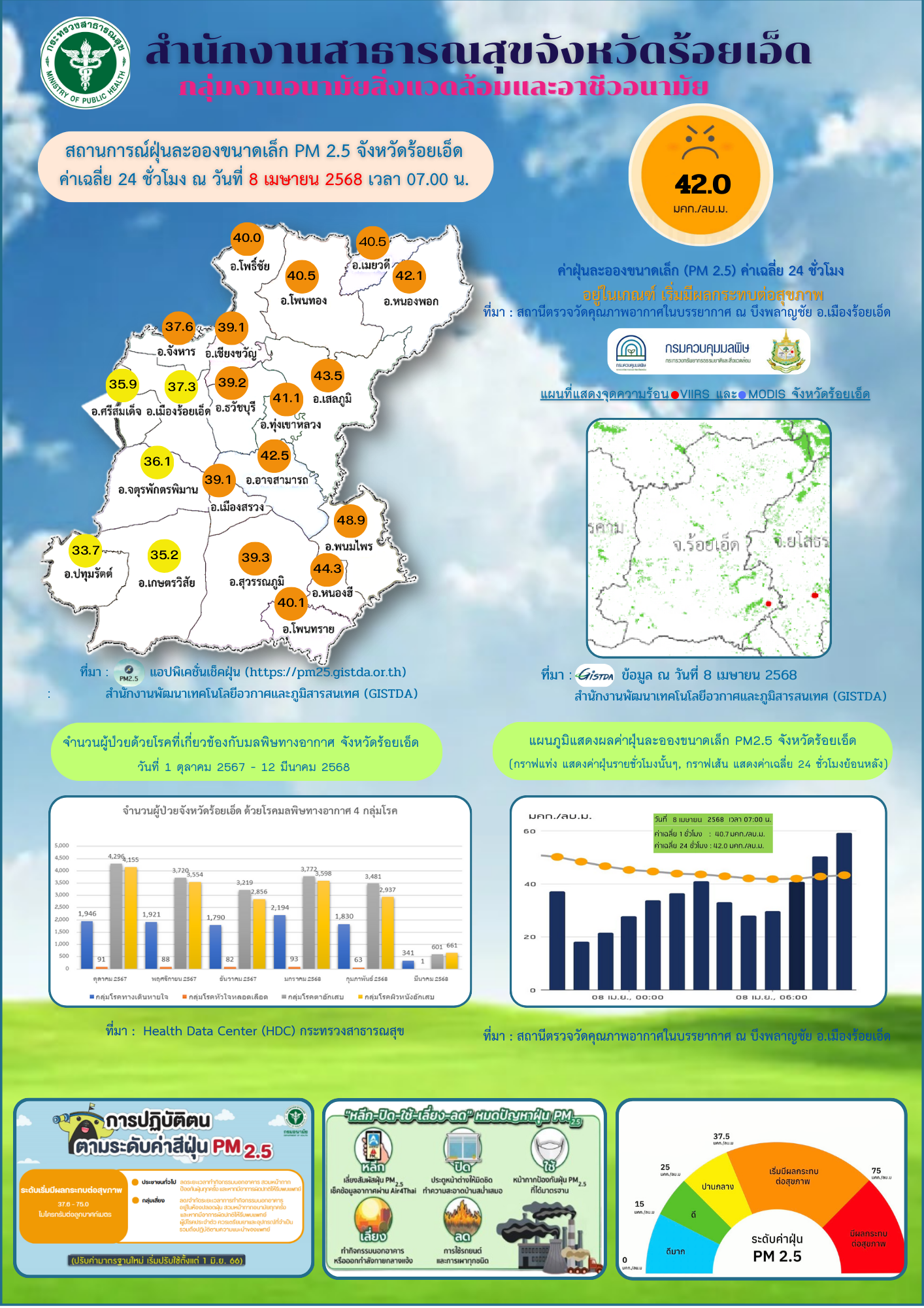 รายงานสถานการณ์ฝุ่นละอองขนาดเล็ก (PM2.5) จังหวัดร้อยเอ็ด เดือนเมษายน 2568